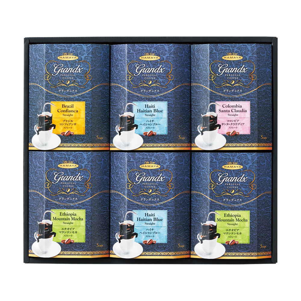 ハイチヘイシャンブルー・エチオピアマウンテンモカ各8g×10P、ブラジルコンフィアンサ・コロンビアサンタクラウディア各8g×5P 計30