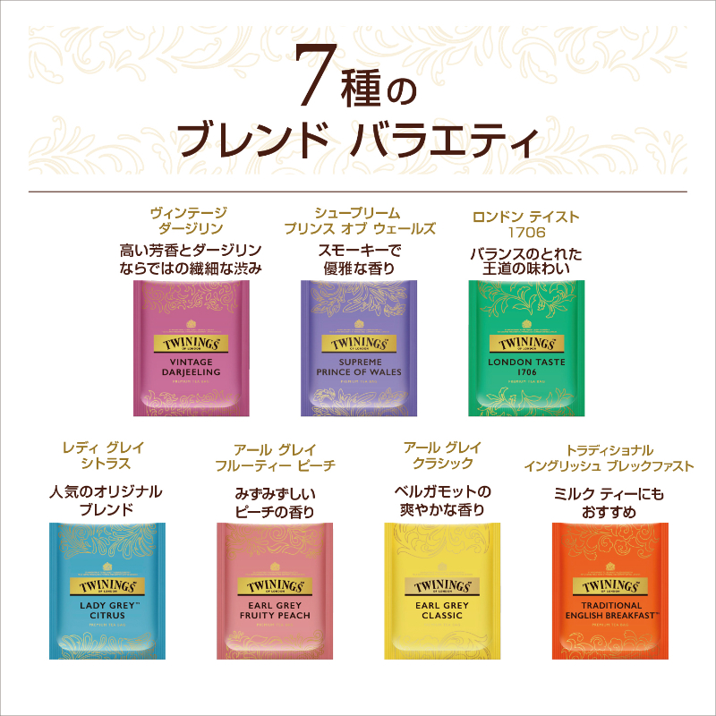 紅茶(アールグレイ×15、ヴィンテージダージリン・レディグレイシトラス・アールグレイフルーティーピーチ・シュープリームプリンスオブウェールズ・イングリッシュブレックファスト・ロンドンテイスト各10)計75※パッケージのデザインが変更となる場合がございます。