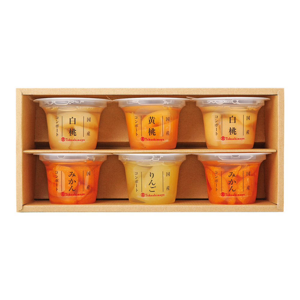 シロップ漬(白桃×2・みかん×2・黄桃・りんご)各145g 原料原産地:白桃・みかん・黄桃・りんご(国産)