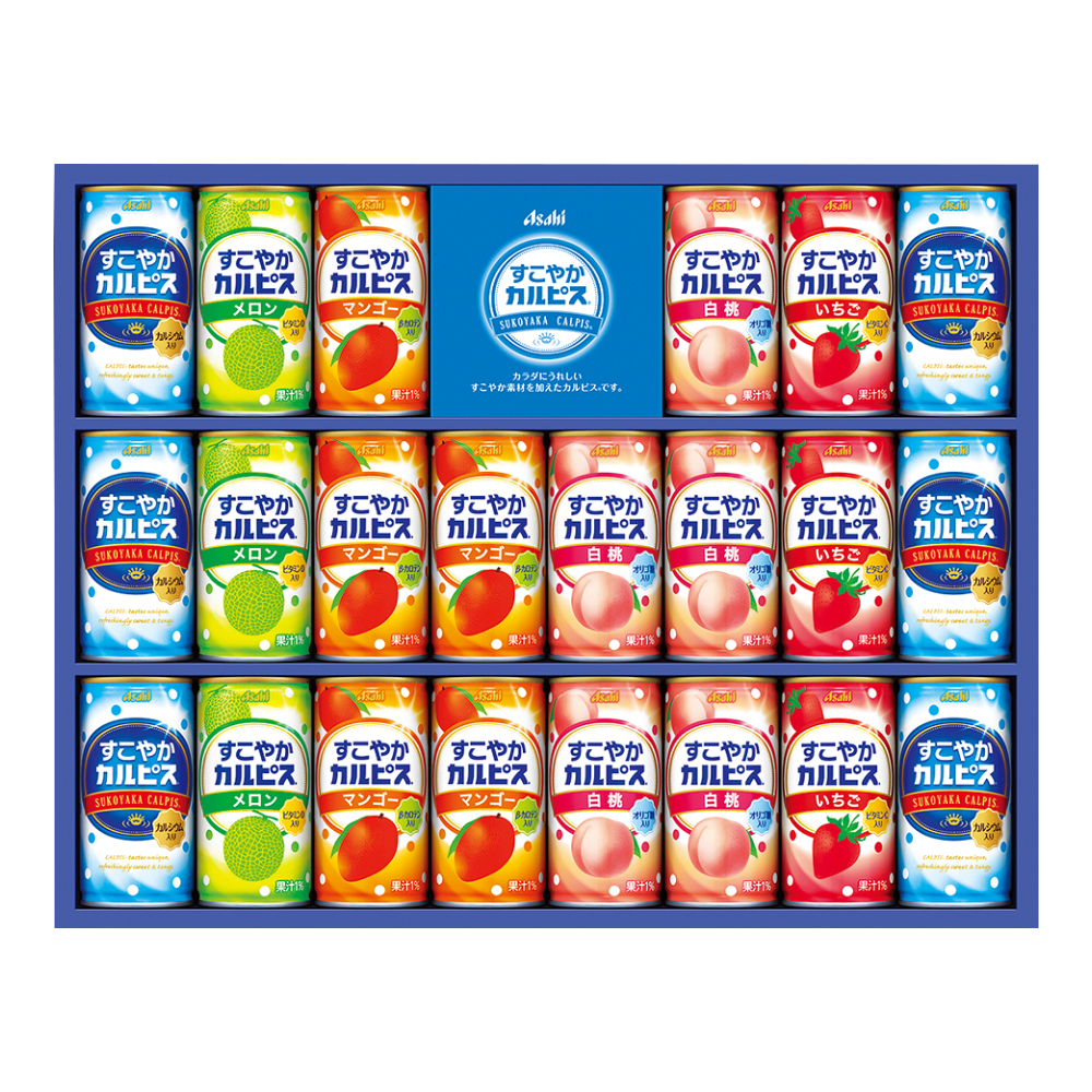 すこやかカルピス190g×6、すこやかカルピス白桃・すこやかカルピスマンゴー各190g×5、すこやかカルピスいちご・すこやかカルピスメロン各190g×3