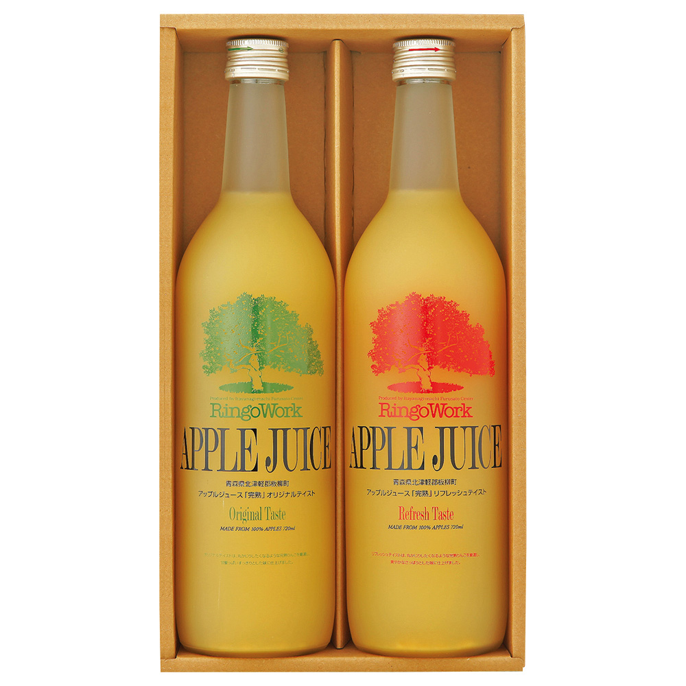 オリジナルテイスト・リフレッシュテイスト各720ml(果汁100%ストレート) 原料原産地:りんご(青森県)