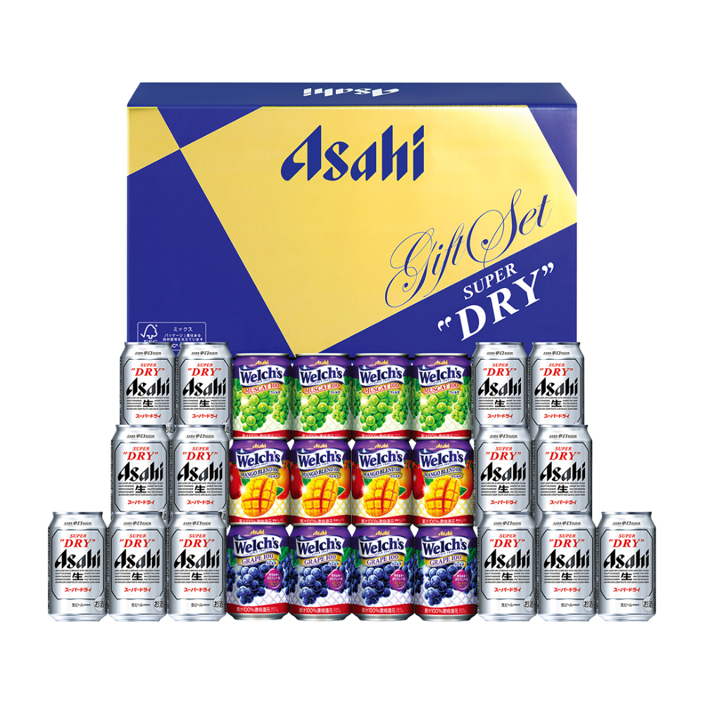 スーパードライ350ml×14、ウェルチ100(コンコードグレープ・マンゴーブレンド・マスカット)各280g×4