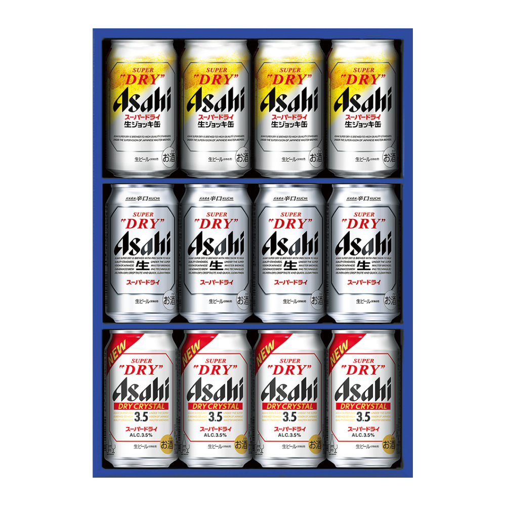 スーパードライ生ジョッキ缶340ml×4、スーパードライ・ドライクリスタル各350ml×4