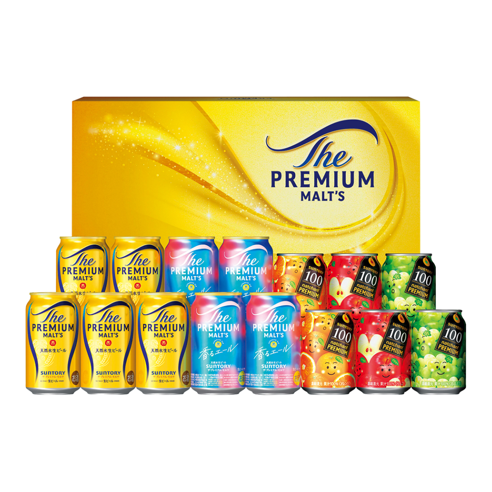ザ・プレミアム・モルツ350ml×5、香るエール350ml×4、なっちゃんプレミアム100(オレンジ・りんご・白ぶどう)各290g×2