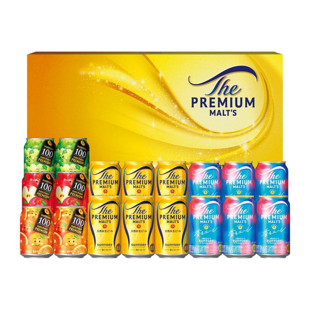 ザ・プレミアム・モルツ350ml×6、香るエール350ml×6、なっちゃんプレミアム100(オレンジ・りんご・白ぶどう)各290g×2