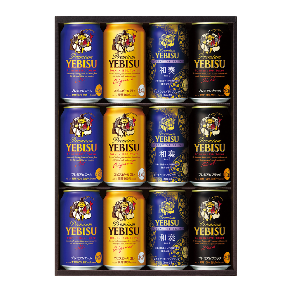 ヱビス・ヱビスクリエイティブブリュー和奏・ヱビスプレミアムエール・ヱビスプレミアムブラック 各350ml×3
