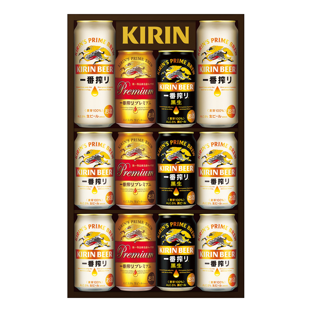 一番搾り350ml×4・500ml×2、一番搾りプレミアム・一番搾り黒生各350ml×3