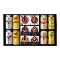 スーパードライ・ヱビス・一番搾り・ザ・プレミアム・モルツ各350ml×2、缶つま×6(九州産ぶりあら炊き150g、群馬県産赤城山麓豚角煮150g、Smokeうずら卵25g、Smokeあさり40g、Smoke豚タン50g、Smoke鮭ハラス50g)