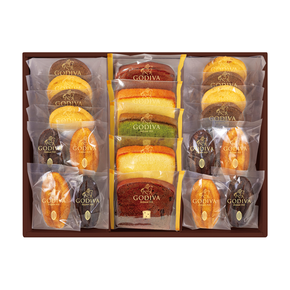 ケーク(ショコラ・ショコラ ブラン エ ノワドゥココ各2、抹茶)、カカオフィナンシェ(ショコラ・ジャンドゥーヤ)各4、フールセック(ダークチョコレート・ホワイトチョコレート)各4
