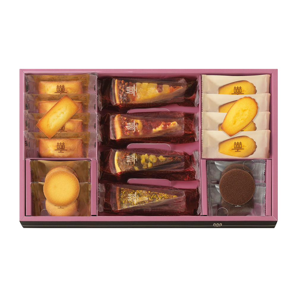 フルーツタルト4種、フィナンシェ・マドレーヌ各4、クリームサンドクッキー(プレーン・チョコレート)各2