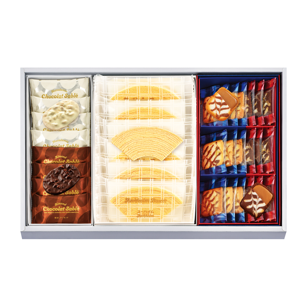 ユーハイムバウム×6、サンドクッキー×18、ショコラサブレ(アーモンド・マカダミアナッツ)各4