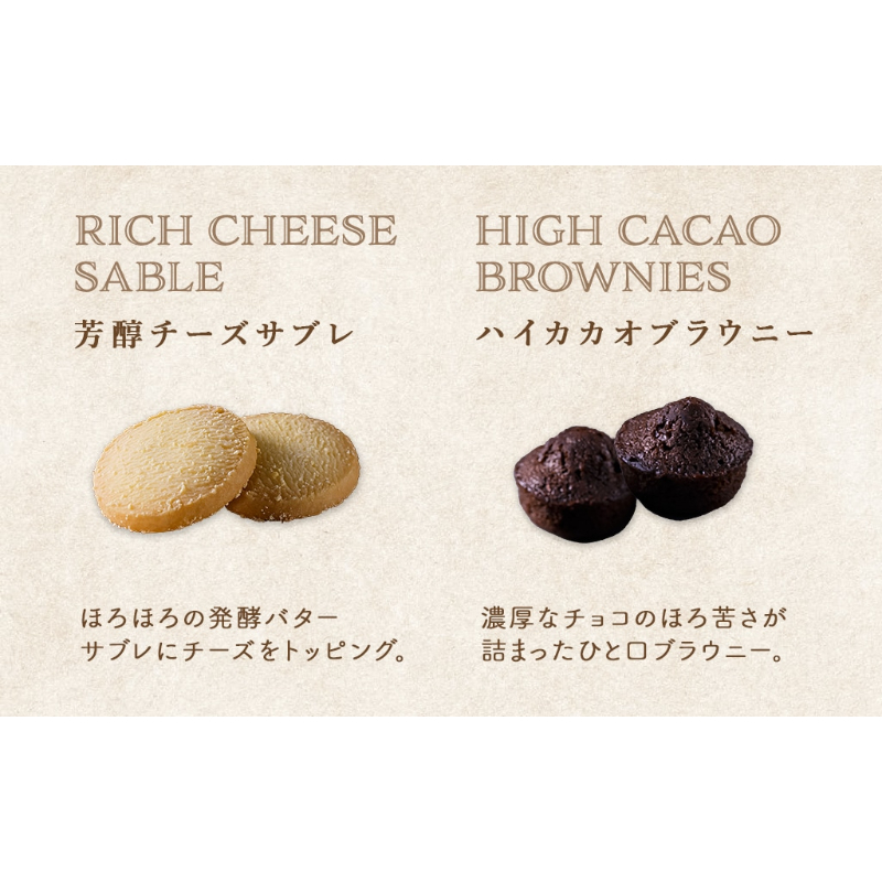 焼きティラミス・焼きティラミスショコラ各5、チョコサンドクッキー×8(ミルク・チョコ各3、いちご×2)、ハイカカオブラウニー・芳醇チーズサブレ各4