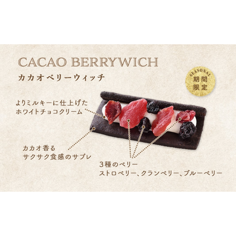 大切な方へのギフトに。ベリーウィッチ、季節限定のカカオベリーウィッチを中心としたアソートです。