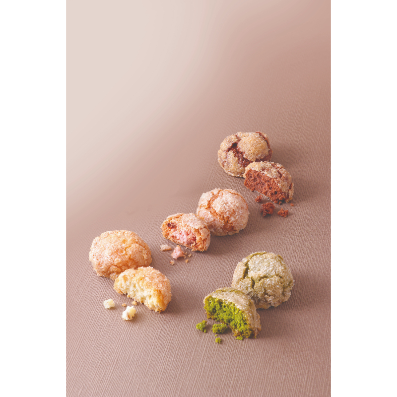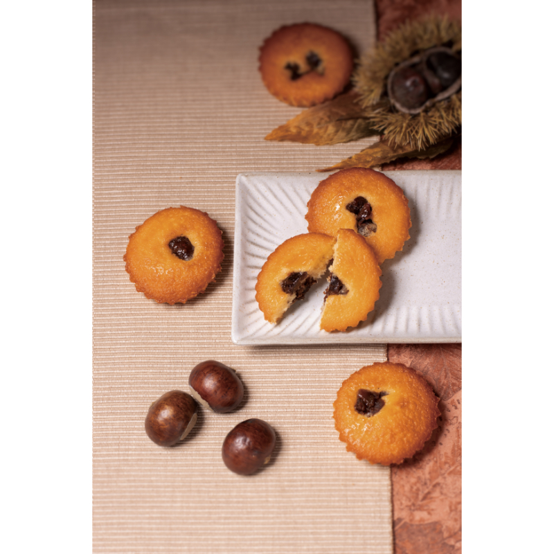季節限定の蜜栗のケーキ、幸せを運ぶお菓子ポルポローネ、サクッとくちどけの良いチョコチップクッキー、天使のリボンパイ、フレッ シュバターを使った、マドレーヌ、フィナンシェ、クリームとレーズンをサンドしたランシャ等の焼菓子を種類豊富にアソート いたしました。