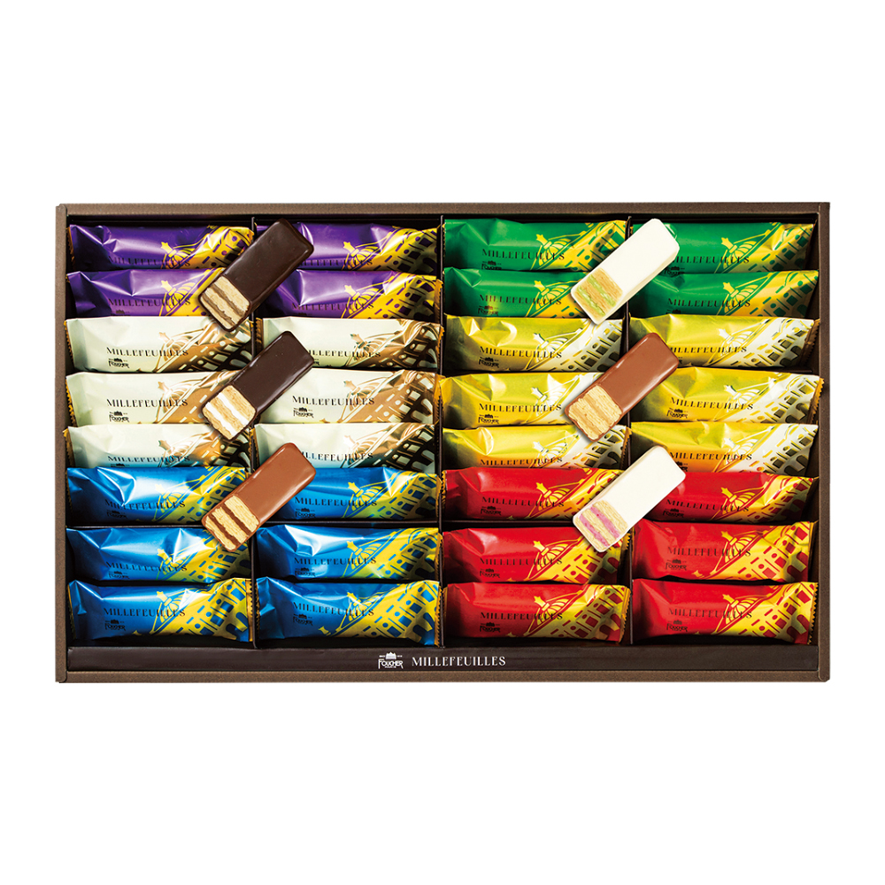 ミルフィーユ×32(バニラ・ストロベリー・キャラメル・バターショコラ各6、アールグレイ・宇治抹茶各4)