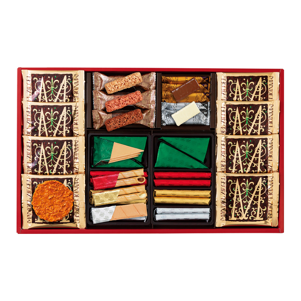 ロングセラーのエコルセ、軽やかで香ばしいマンデルチーゲルなど、バラエティー豊かなセット。