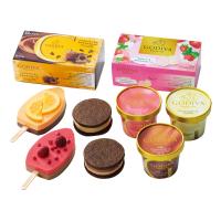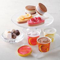 定番フレーバーのカップアイスにサンドアイス、粒タイプのショコラフォンデュなど、人気の味をセット。
