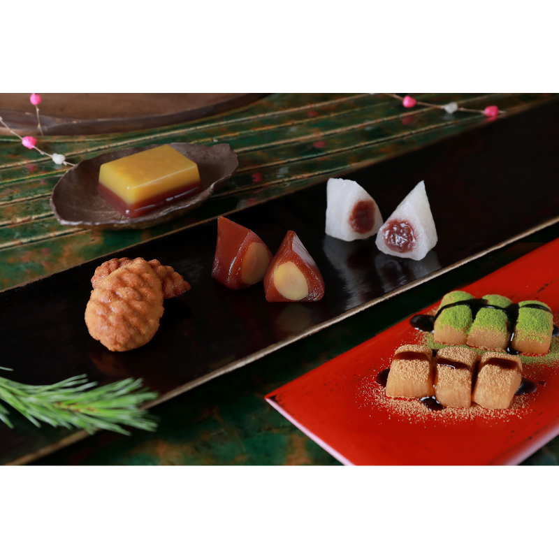 小豆の煮汁を加えて風味豊かな蒸羊羹に、黄栗の甘露煮をまるごと一粒包み込んだ「栗山家」を中心に、柚子の香りが広がる北海道小豆のこし餡をやわらかな道明寺羹で包み込んだ「深山守」など、個々の季節銘菓を詰合せました。