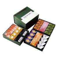 上段:あも、閼伽井(黒蜜きなこ・抹茶各4)、中段:あも(栗)、栗山家・深山守各4、下段:季折・松笠ひろい各4、あも歌留多(最中種)×2