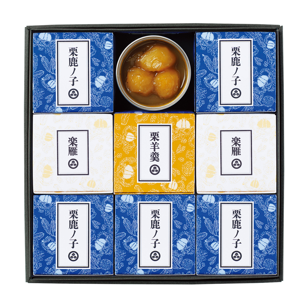 栗鹿ノ子ミニ×6、楽雁ミニ8枚入×2、栗羊羹ミニ3本入