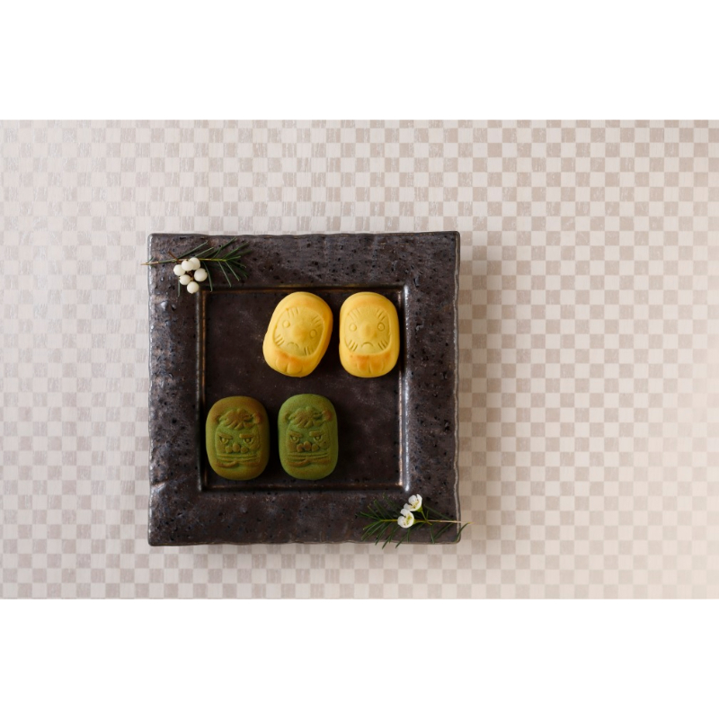 干支菓(午)・千客万来各4、おきあがりこぼし・さつまいも各2、獅子舞 お届け時期:11月1日から