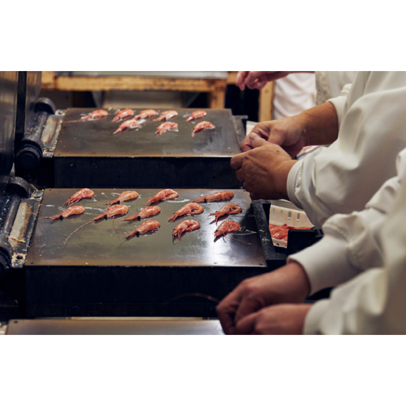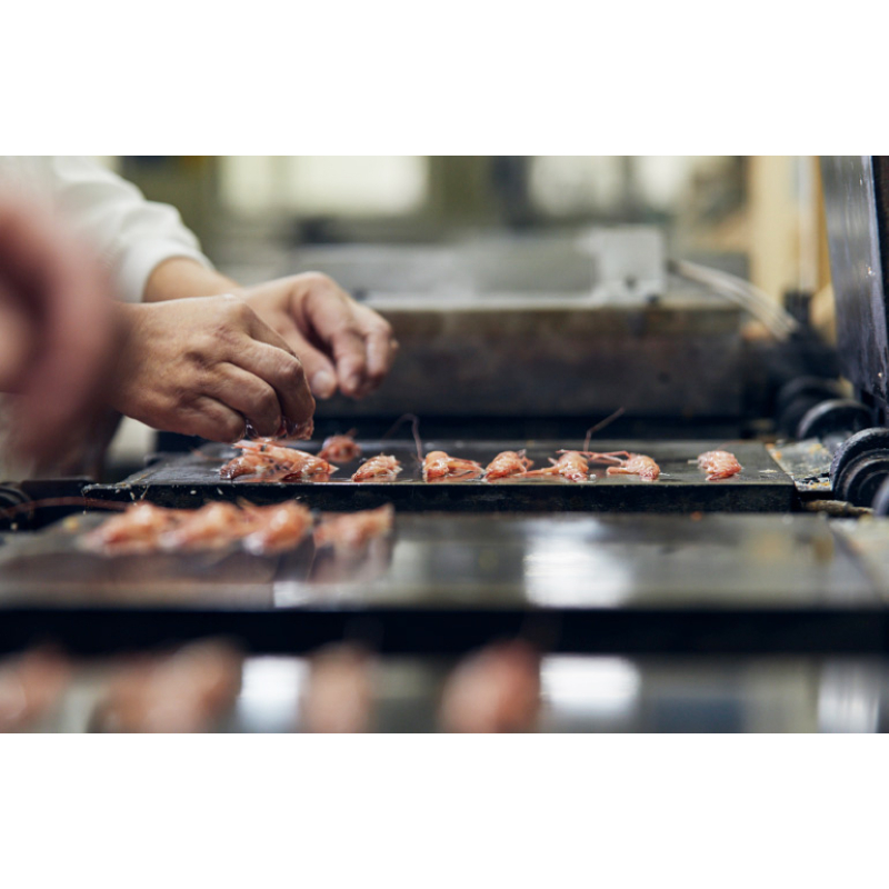 甘えび浜焼きは、北海道産の甘えびを原料に、姿形を生かして焼きあげました。