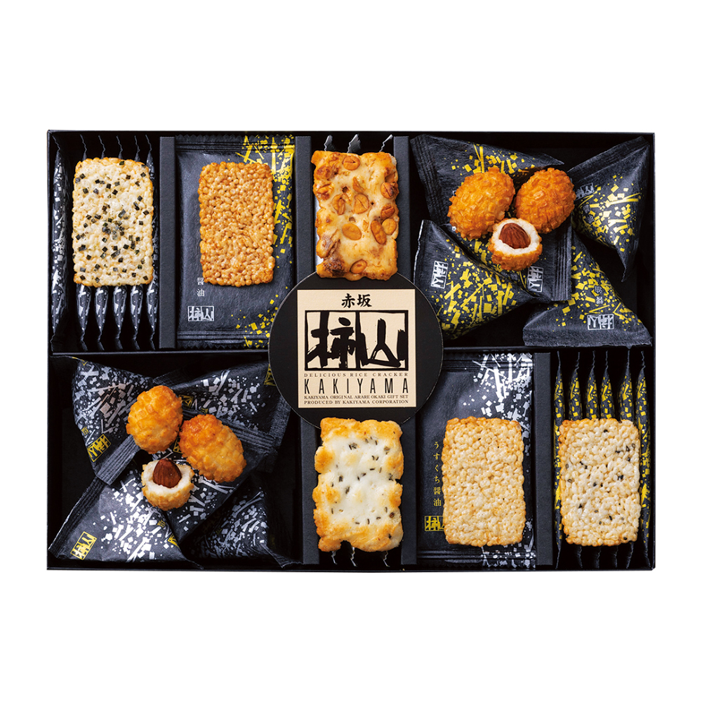 慶長(醤油・しぶき海苔・胡麻・うすくち醤油各6)、慶凰(醤油・塩各5)、豆柿・かきもち昆布各3