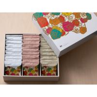 ステンドグラスをイメージした色彩豊かな花のモチーフのデザインボックスに、食べきりのひと包みを3種類詰合せました。お花をいただいた時の気持ちになれるような装いが、日常を華やかに彩ります。1箱で21種類の多彩な味わいが飽きさせない充実のおいしさが魅力です。