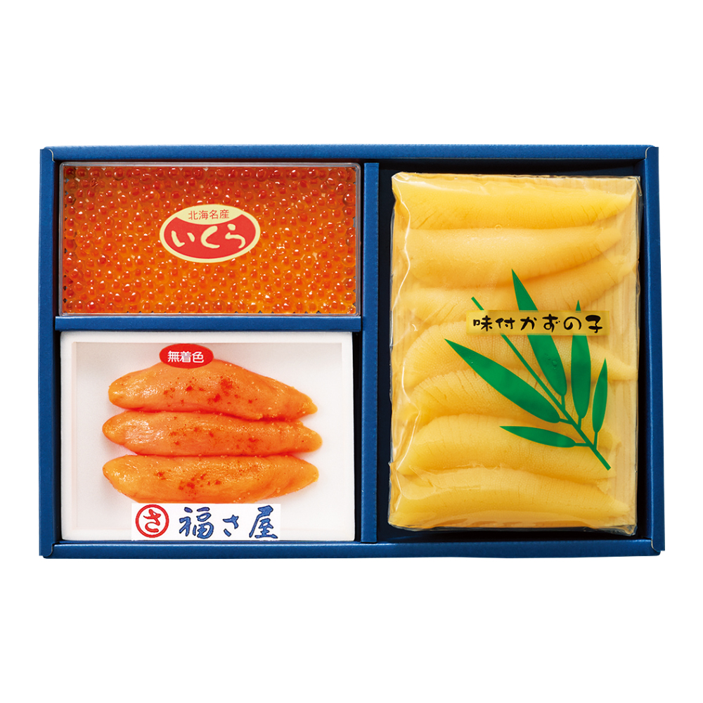 無着色辛子明太子2~4本計100g(密封袋入)、醤油漬いくら50g、味付かずの子6~7本計130g