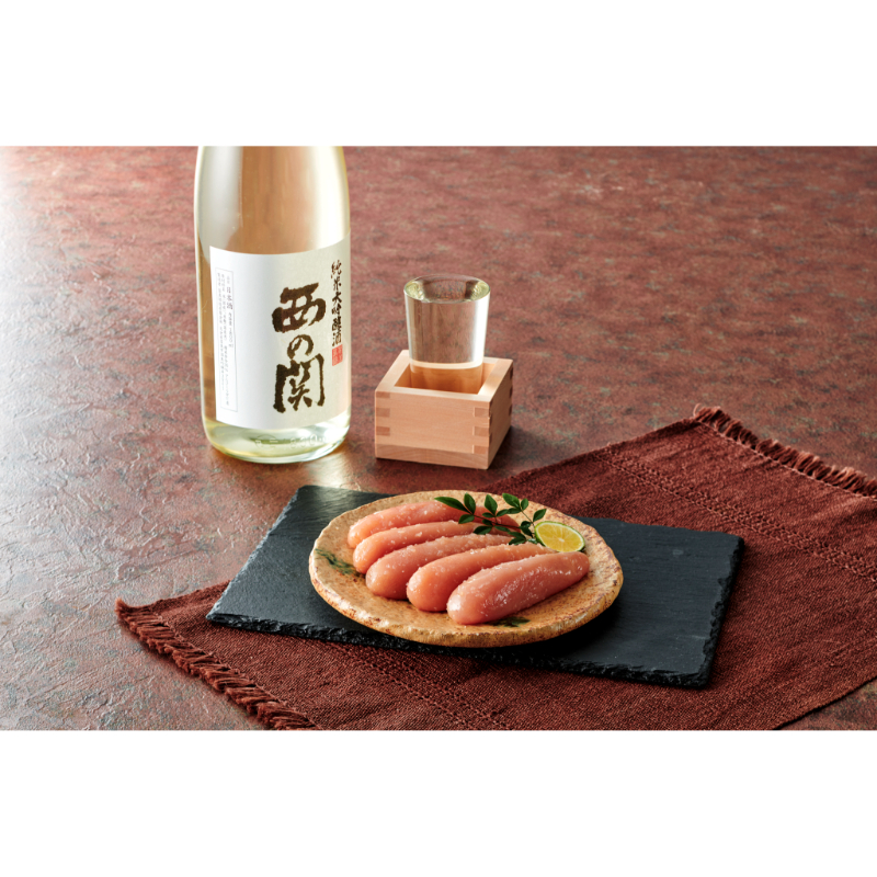 明太子の漬け込み液には羅臼昆布、西の関の純米大吟醸酒、国産唐辛子に加え、長崎産あごと枕崎産のかつお節のだしを使用しています。だしの香り豊かな明太子をお楽しみください。