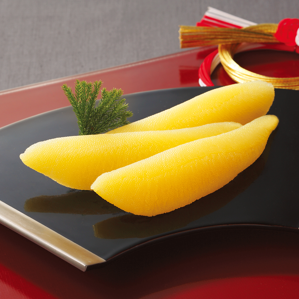 北海道で獲れたにしんを加工しました。うす皮むき加工の塩数の子は、皮をむく手間がいりません。
