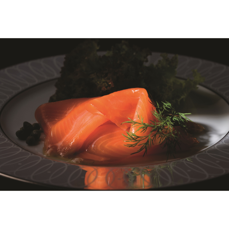 王子サーモンが厳選したノルウェー産サーモントラウトを「フィヨルドサーモン」とよびます。味にクセがなく、ぷりぷりとした舌ざわりで非常に食べやすい人気の魚種です。フィヨルドサーモンの風味を充分に生かすようにじっくり時間をかけてソフトな燻製に仕上げました。「姿切」のインパクトある見栄えを残しながらも、より保管しやすく便利にお召仕上がりいただけるよう「小分けパック姿切」でお届けいたします。