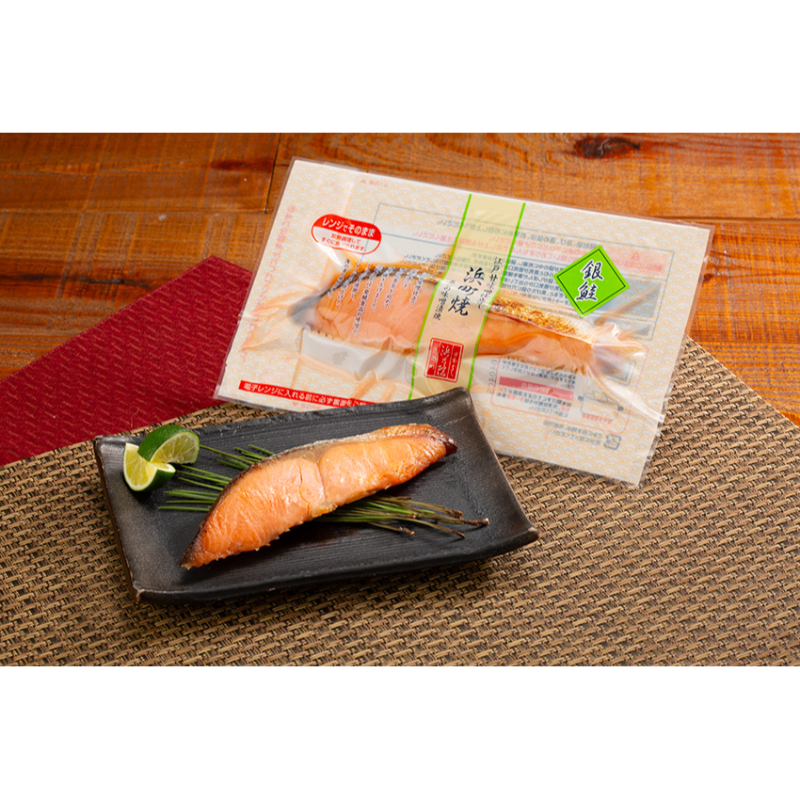 浜町焼(銀鮭・からすがれい・銀ひらす・いか(2切入)各50g)、紅鮭石狩漬110g、数の子(にぎり子)松前漬100g