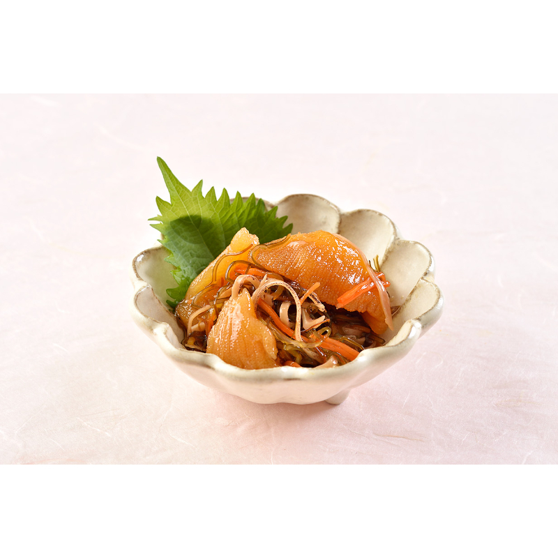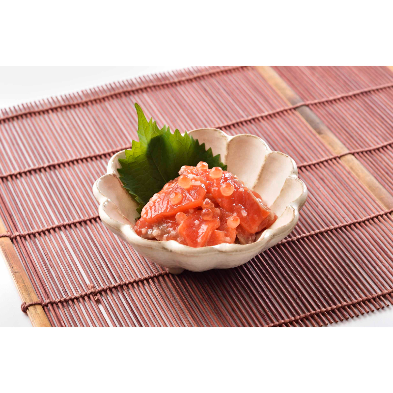 レンジで簡単に温められる「浜町焼」と年末年始のごちそうにピッタリな珍味「紅鮭石狩漬」・「数の子(にぎりこ)松前漬」を詰合せいたしました。「にぎりこ」とは、獲れたてのニシンから取り出した生の数の子をその場で塩締めしたもので漂白をしないため、旨味も風味も格別で希少な数の子です。