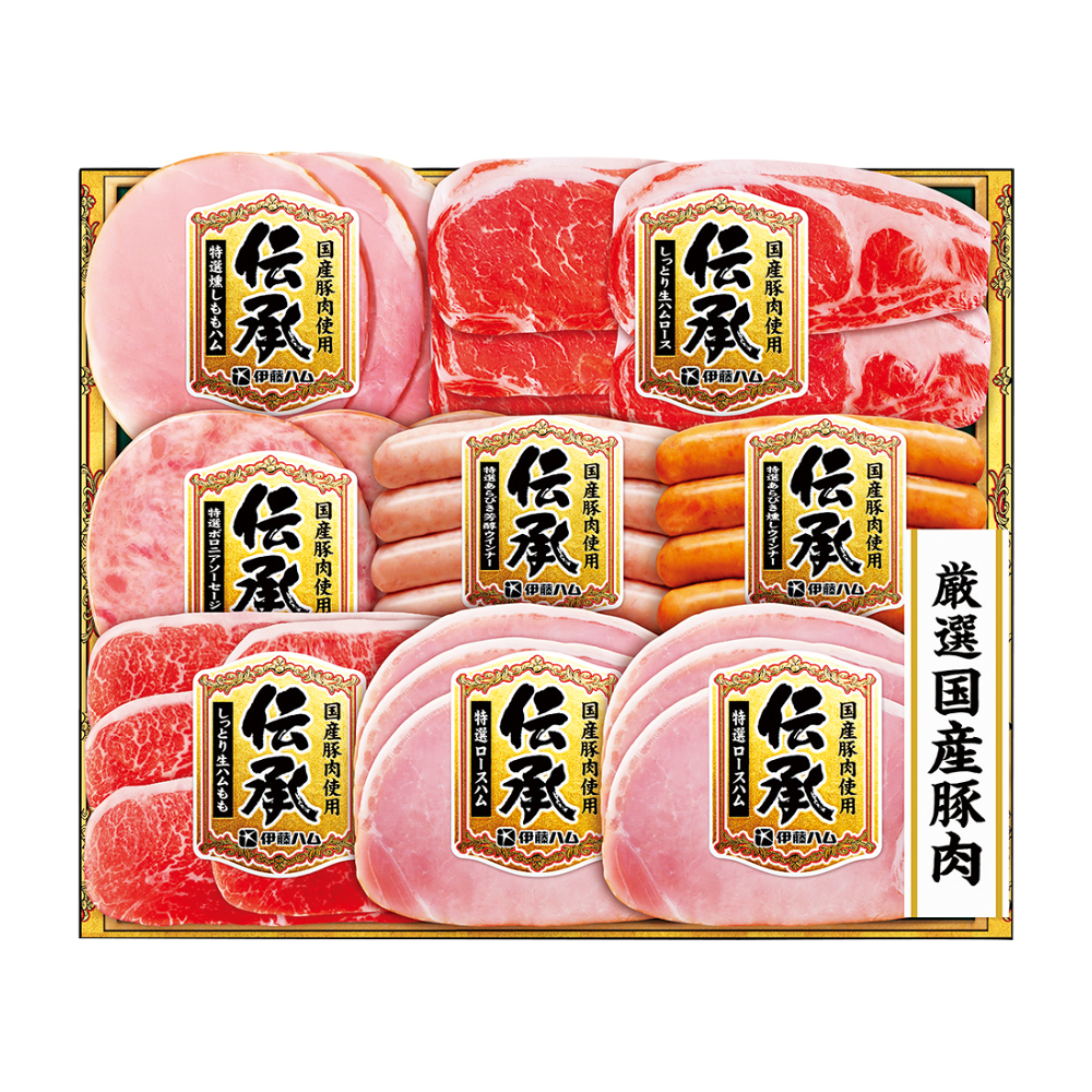 燻しももハム48g、ロースハム45g×2、ボロニアソーセージ51g、しっとり生ハムロース34g、あらびき燻しウインナー85g、あらびき芳醇ウインナー85g、しっとり生ハムもも34g