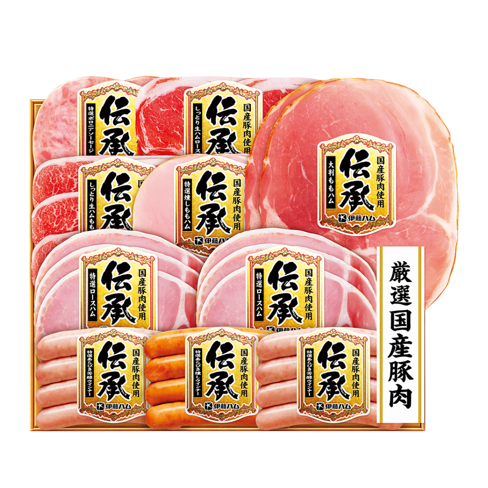 大判ももハム80g、ロースハム45g×2、燻しももハム48g、しっとり生ハムロース34g、ボロニアソーセージ51g、あらびき燻しウインナー85g、あらびき芳醇ウインナー85g×2、ほか1種計10点