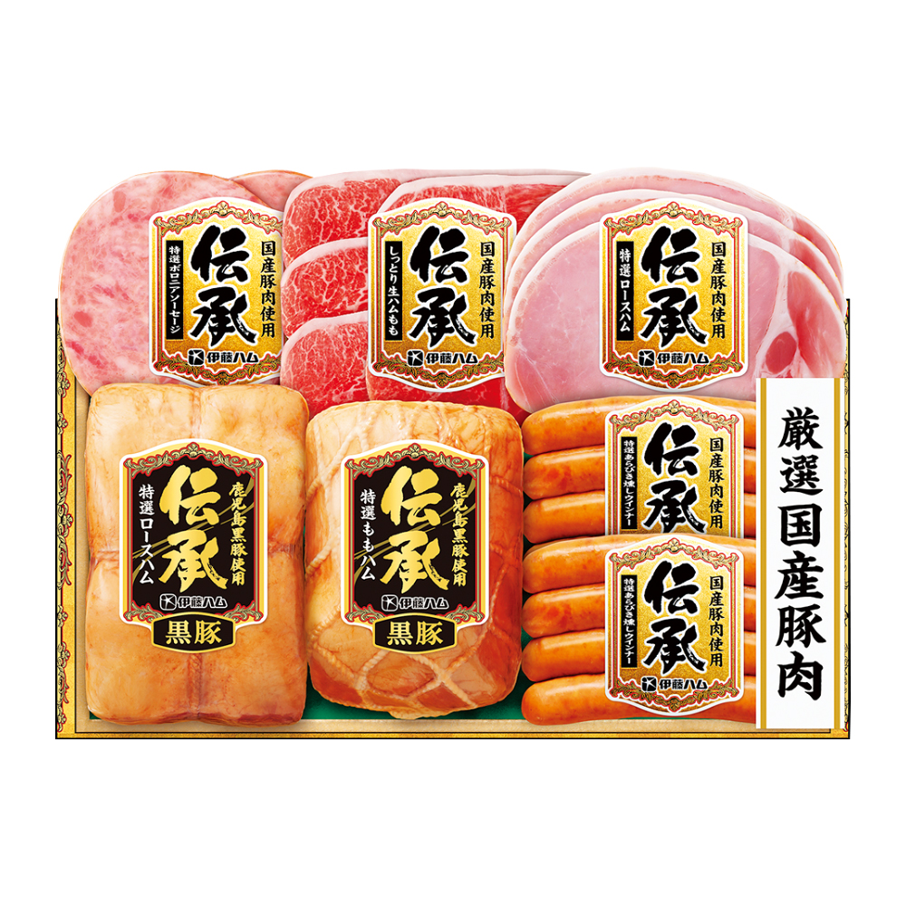 鹿児島黒豚ロースハム340g、鹿児島黒豚ももハム220g、しっとり生ハムもも34g、ボロニアソーセージ51g、ロースハム45g、あらびき燻しウインナー85g×2