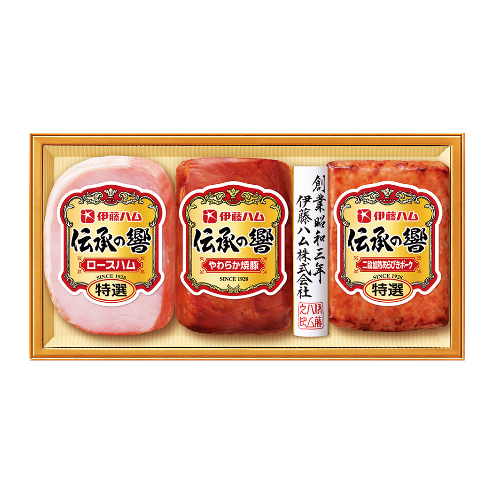 特選ロースハム180g、やわらか焼豚185g、二段加熱あらびきポーク110g