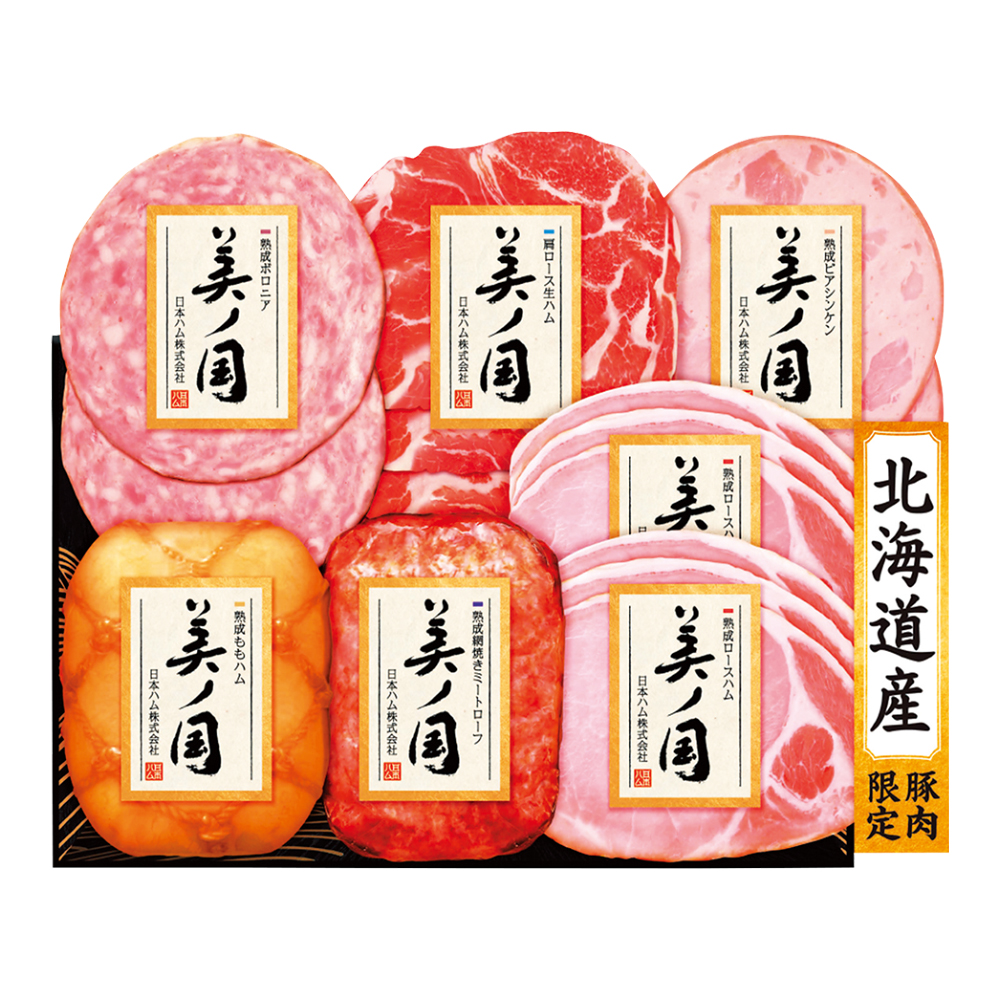 素材は北海道、技は日本ハム。北海道産豚肉のみを使い、丁寧に仕上げたハムギフトです。
