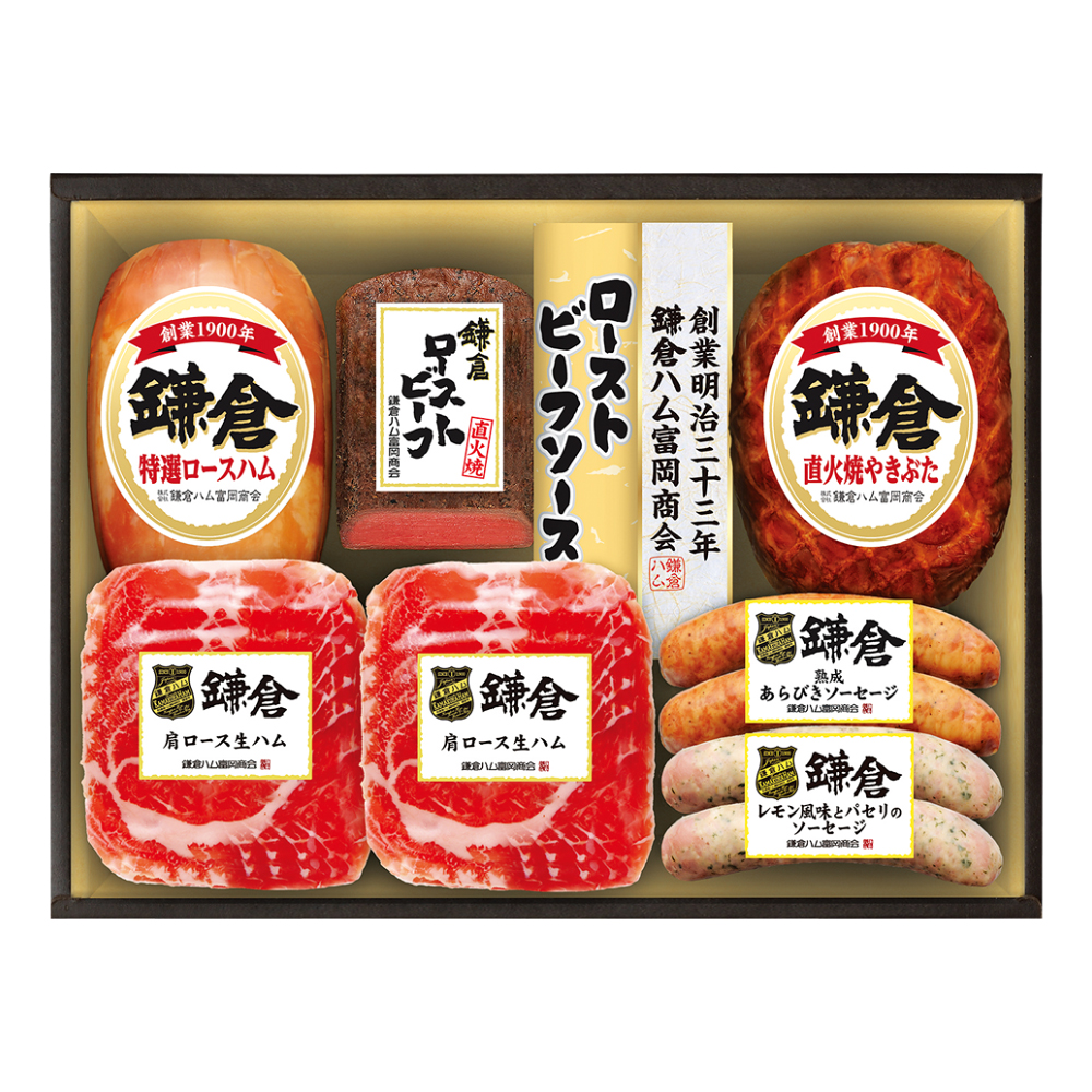 直火焼ローストビーフ110g、ローストビーフソース30g、特選ロースハム320g、直火焼やきぶた170g、肩ロース生ハム50g×2、熟成あらびきソーセージ・レモン風味とパセリのソーセージ各80g 原料原産地:牛肉(オーストラリア)