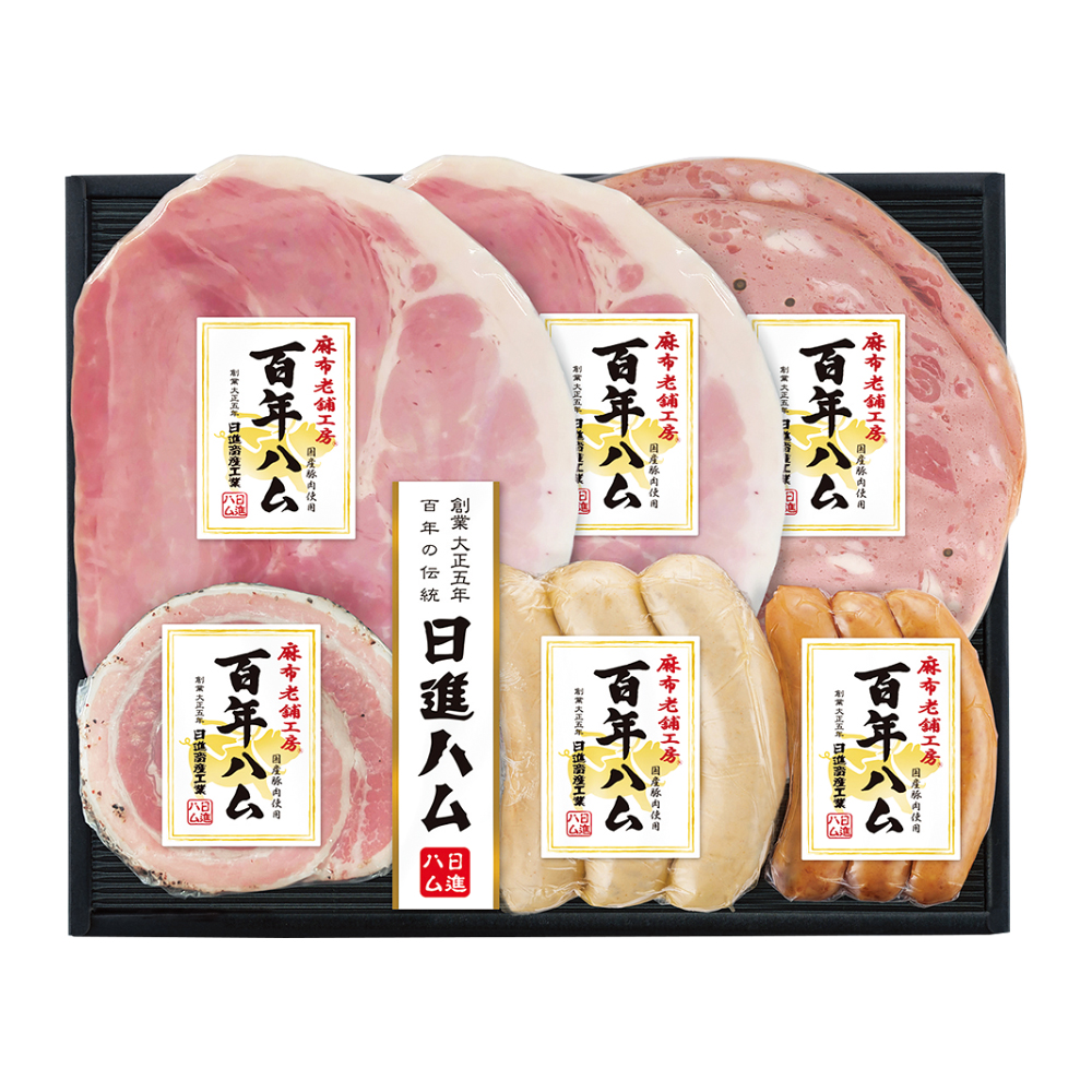 国産豚ボンレスハム120g×2、国産ジャンボリオナー80g、国産豚厚切りベリーハム90g、国産豚ホワイトフランク168g、国産豚荒挽ウインナー72g