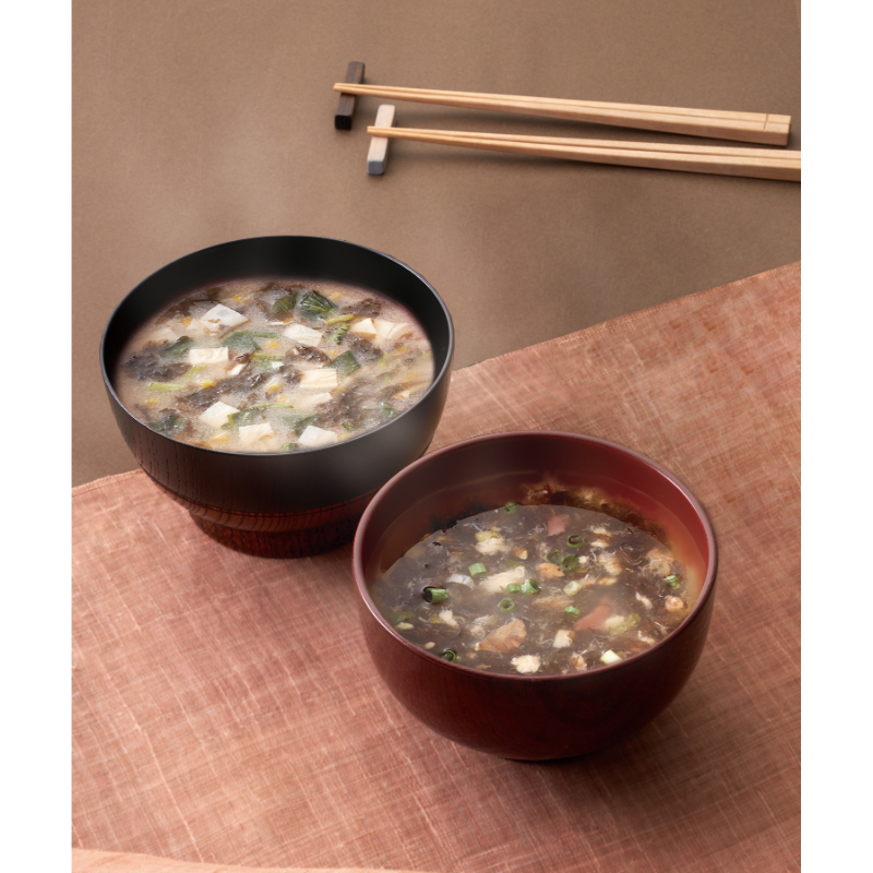 海苔を楽しむお味噌汁(ゆばと柚子・豚汁 各3、揚げなす×6)、お吸物(鯛ほぐし×3)計15食