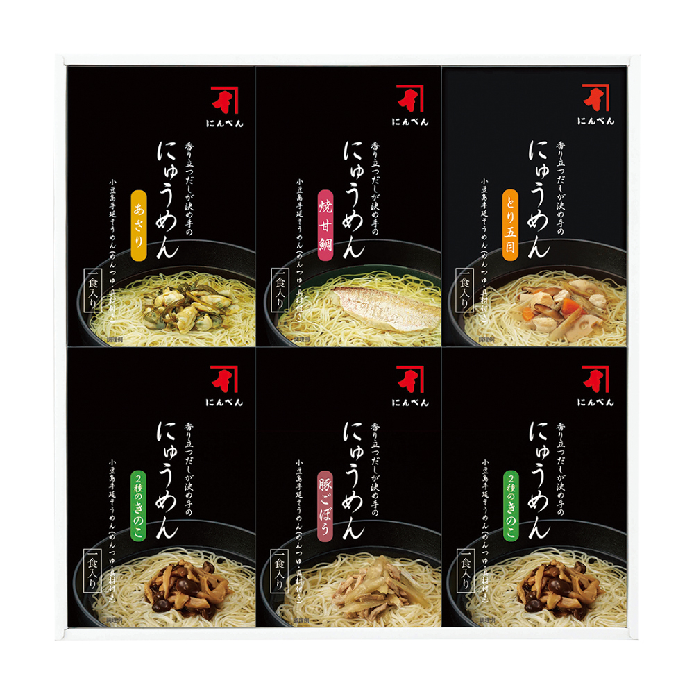 小豆島手延にゅうめん(2種のきのこ×2、焼甘鯛・豚ごぼう・とり五目・あさり):麺各40g、つゆ・具材付