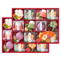 赤富士、青富士などを模した最中種にこだわりの具材を入れた、京風お茶漬・お吸物。紅白の最中を貼り合わせした京壬生菜とふかひれのお吸い物など。お湯を注ぐだけで簡単に食卓を彩る一品に。ご飯だけでなく、お餅と一緒でも美味です。