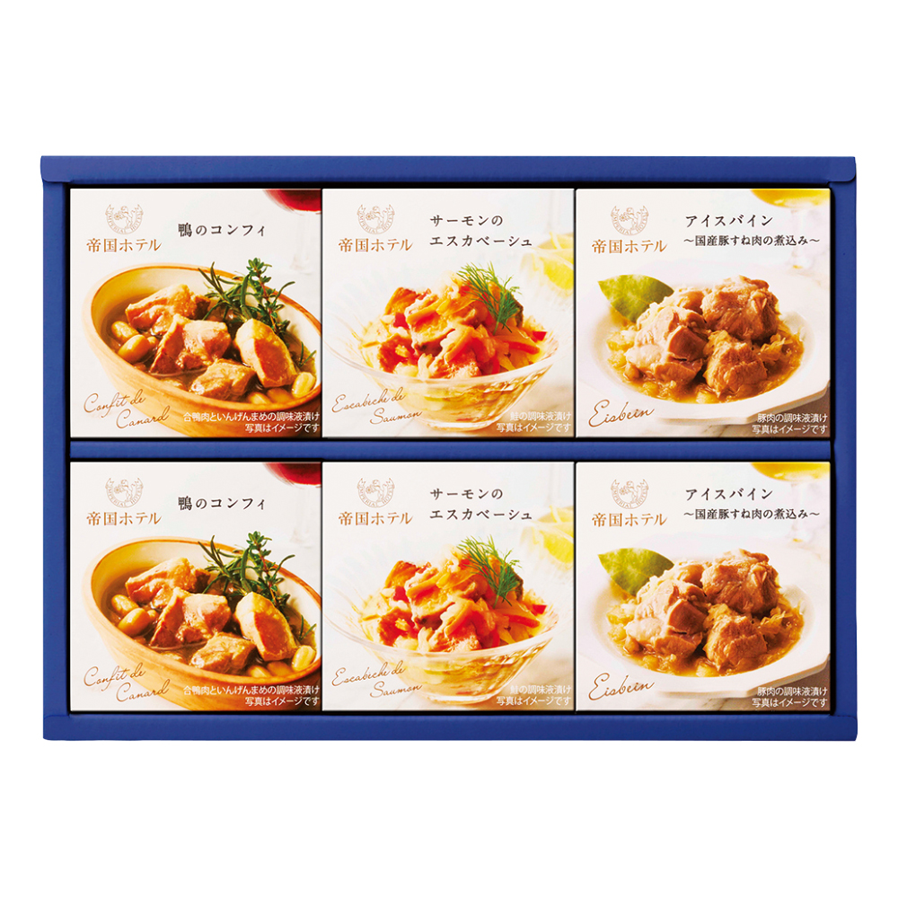 サーモンのエスカベーシュ・アイスバイン(国産豚すね肉の煮込み)・鴨のコンフィ各85g×2