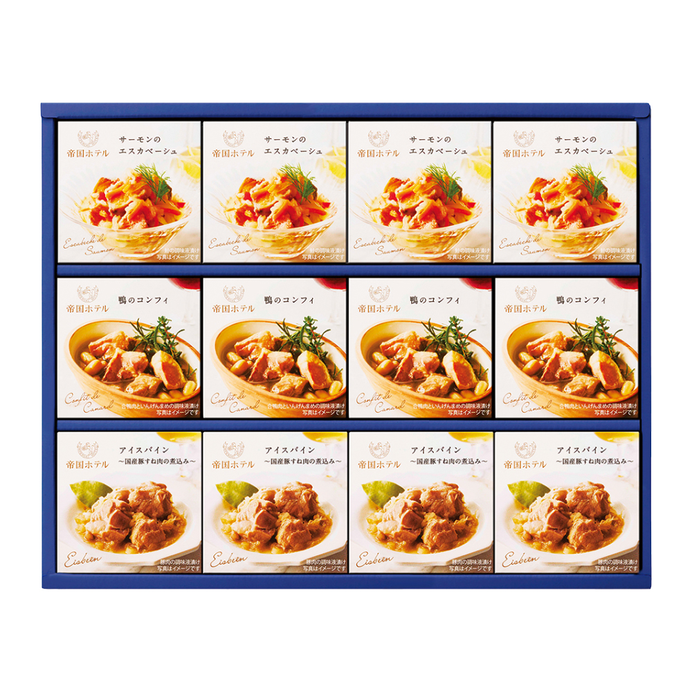 サーモンのエスカベーシュ・アイスバイン(国産豚すね肉の煮込み)・鴨のコンフィ各85g×4
