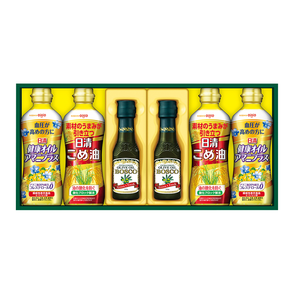 ボスコエキストラバージンオリーブオイル140g×2、こめ油・健康オイルアマニプラス 各350g×2