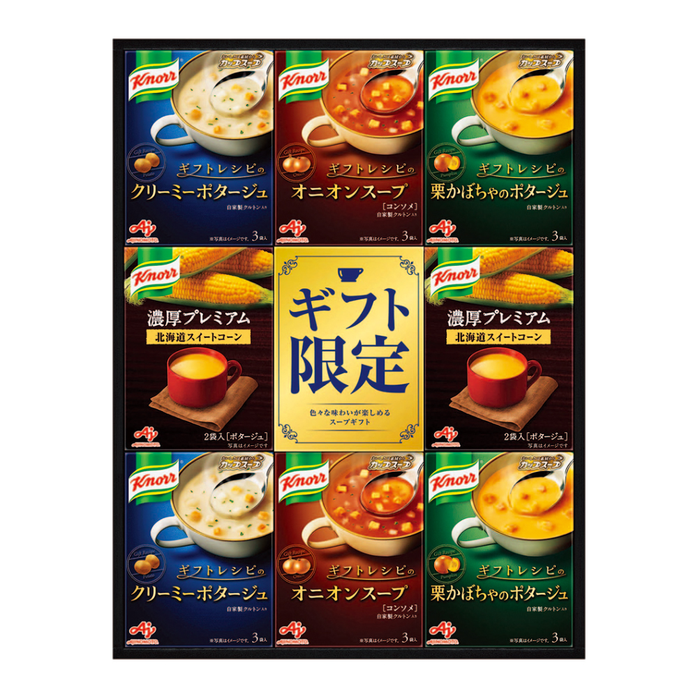 北海道スイートコーン2袋入×2、クリーミーポタージュ・オニオンスープ・栗かぼちゃのポタージュ各3袋入×2