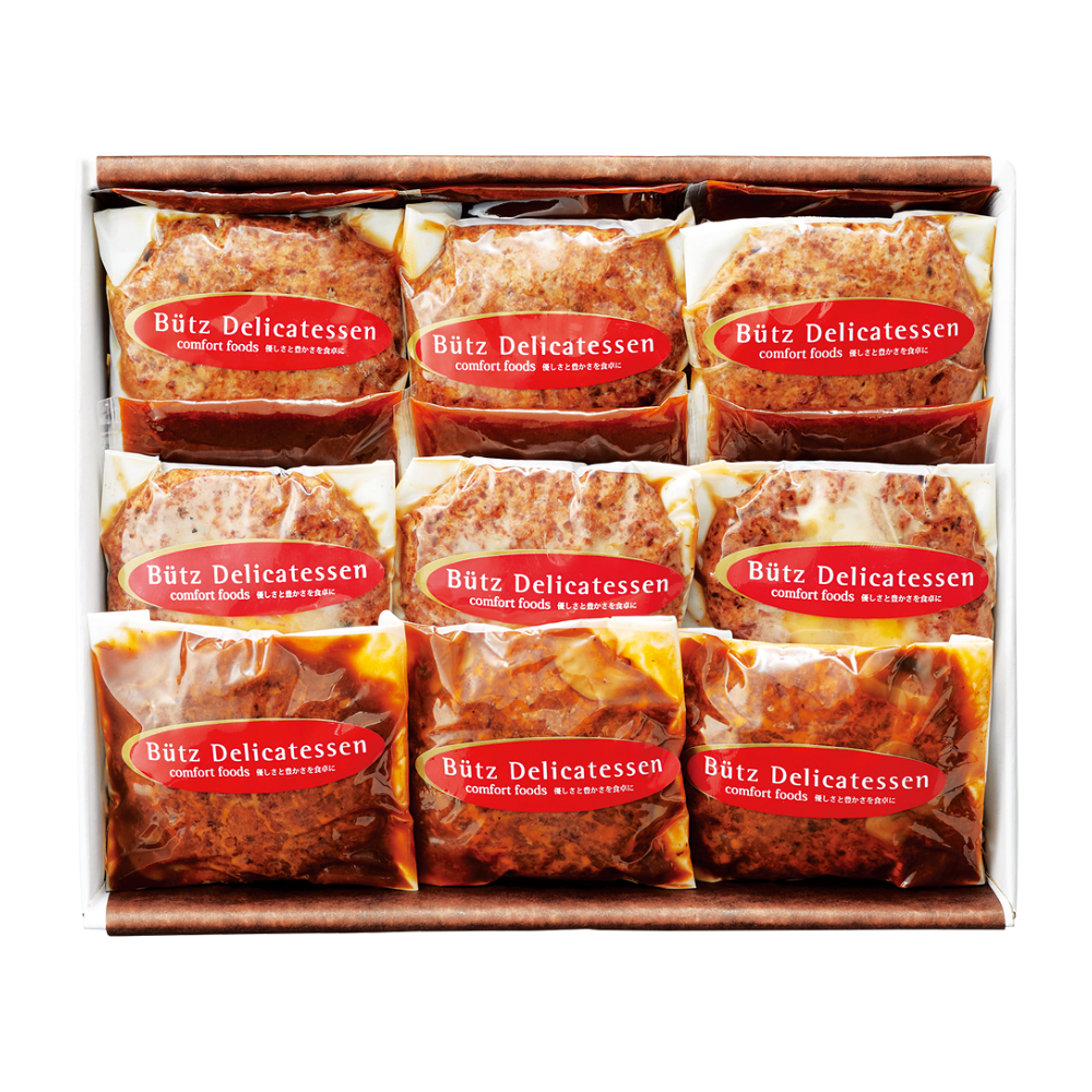 プレーンハンバーグ・チーズハンバーグ各110g×3、煮込みハンバーグ125g×3、ソース付