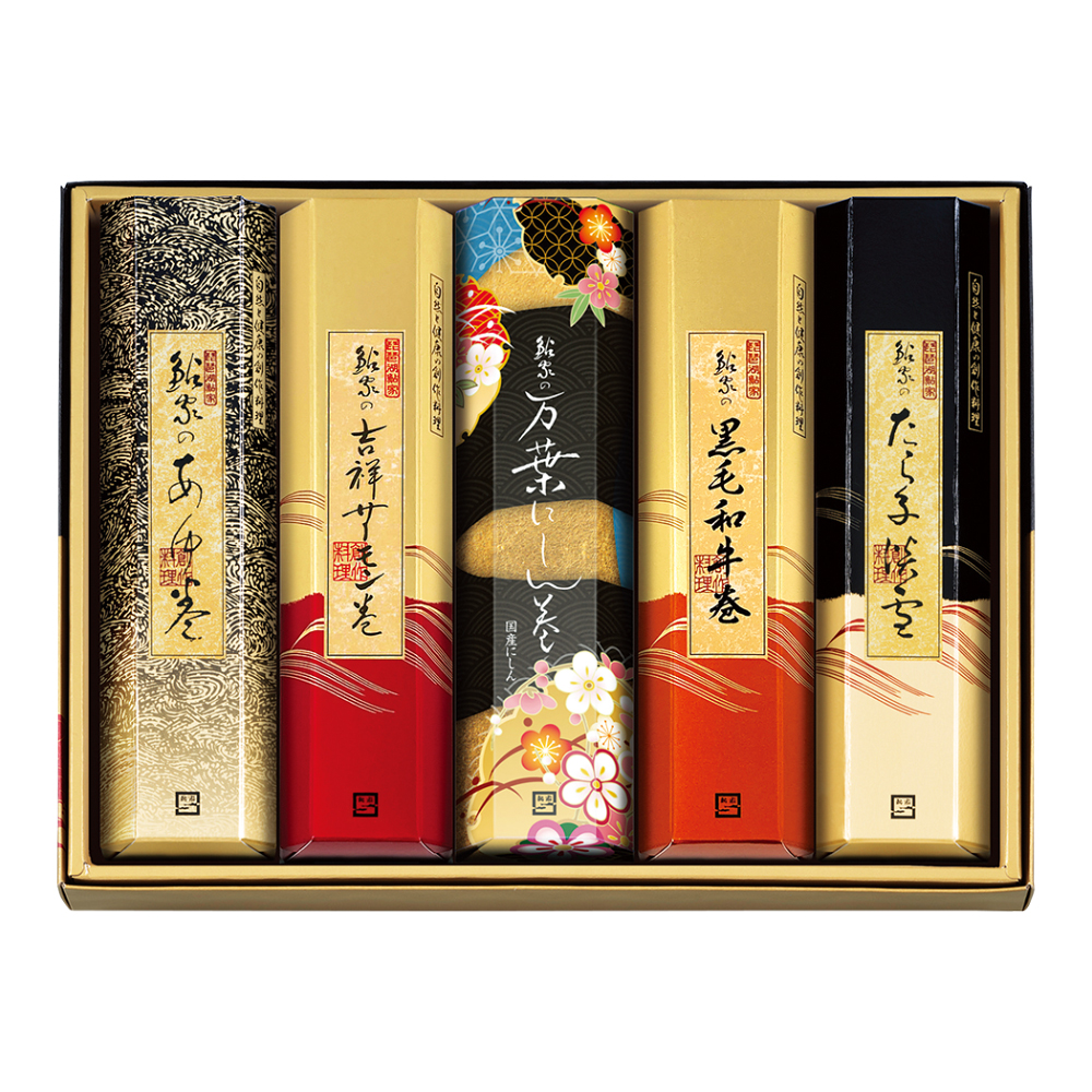 鮎家のあゆ巻190g、吉祥サーモン巻・万葉にしん巻・黒毛和牛巻・たら子淡雪各180g